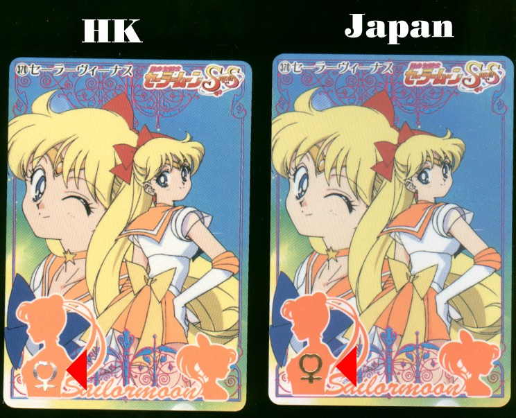 The only things you may call a "fake" are the Hong Kong (marked with an HK) reprints of Graffiti and Carddass cards. These aren't, strictly speaking, fake, but many collectors will be highly upset if you sell them HK cards and not cards marked "Made in Japan" on the backs. Compare the front and back of Graffiti #259 and the front and back of Carddass #370 for the differences between HK and Japanese releases.
