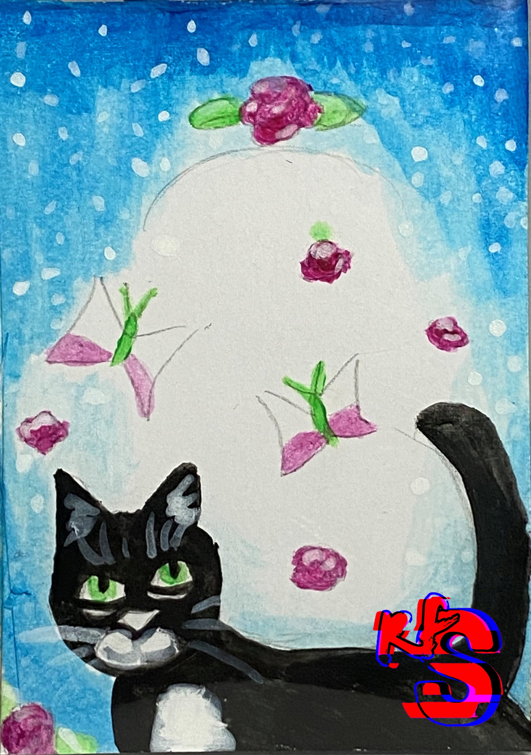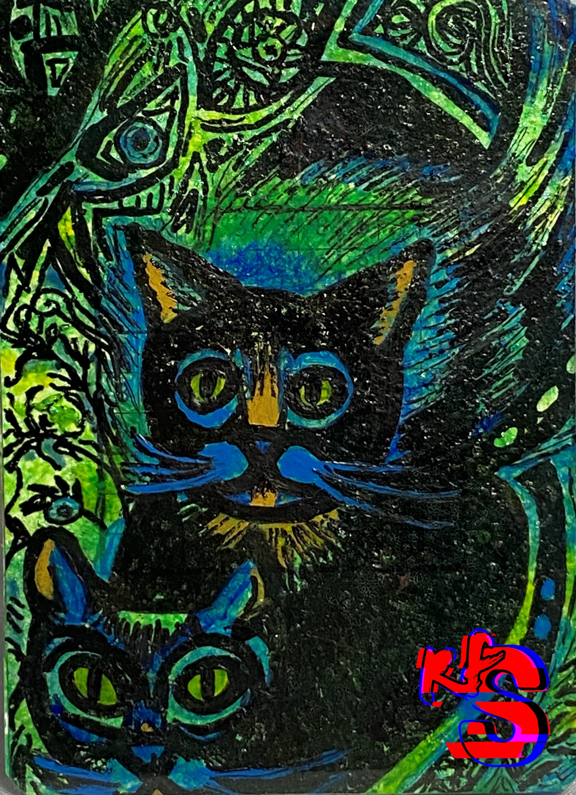 Ess uses a number of techniques in her ATCs, but often uses scraps of decorative paper, neat magazine pages, markers, colored pencils, acrylic or watercolor paint, varnish, and Translucent Liquid Sculpey along with glue - so much glue. Even when the base doodle is reused, each card is hand-finished in some unique way!